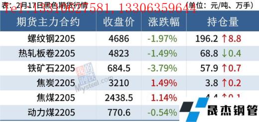 熱軋板卷:2月17日,全國(guó)24個(gè)主要城市4.75mm熱軋板卷均價(jià)5010元/噸,較上個(gè)交易日下跌18元/噸。目前華北、華中地區(qū)供應(yīng)有小幅縮減的情況,但需求持續(xù)萎靡,供需兩弱情況持續(xù)。后市應(yīng)關(guān)注各地限產(chǎn)政策以及冬奧會(huì)后需求是否得到恢復(fù),價(jià)格或?qū)⑹芄┬枨闆r限制。綜合來(lái)看,預(yù)計(jì)18日熱軋板卷價(jià)格或繼續(xù)震蕩偏弱為主。