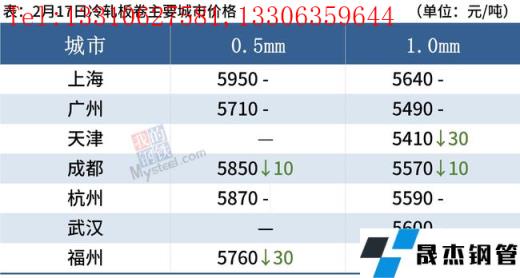 冷軋板卷:2月17日,全國(guó)24個(gè)主要城市1.0mm冷卷均價(jià)5573元/噸,較上個(gè)交易日下跌7元/噸。今日黑色系期貨盤(pán)面整體震蕩偏弱運(yùn)行,市場(chǎng)心態(tài)下滑,近兩日現(xiàn)貨市場(chǎng)價(jià)格均陸續(xù)回落,再加上市場(chǎng)“買(mǎi)漲不買(mǎi)跌”的情緒居高不下,今日整體成交一般。庫(kù)存方面,據(jù)不完全統(tǒng)計(jì),現(xiàn)冷軋無(wú)縫厚壁鋼管廠家?guī)齑?0.94萬(wàn)噸,周環(huán)比減少2.77萬(wàn)噸,社會(huì)庫(kù)存142.03萬(wàn)噸,周環(huán)比增加2.86萬(wàn)噸,周消費(fèi)量80.71萬(wàn)噸,環(huán)比增加13.02萬(wàn)噸。綜合來(lái)看,故預(yù)計(jì)18日國(guó)內(nèi)冷軋板卷價(jià)格或?qū)⒎€(wěn)中偏弱運(yùn)行。