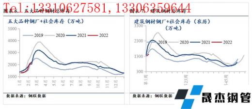 3、庫存端,下周仍處季節(jié)性累庫周期。截至2月17日,五大品種厚壁無縫鋼管庫存2300.1萬噸,環(huán)比上周增加110.4萬噸;螺紋鋼總庫存1201.4萬噸,環(huán)比上周增加91.4萬噸。厚壁無縫鋼管處于季節(jié)性累庫周期之中。庫存從一定程度上來講,是供需共同作用的結(jié)果,如下周無縫厚壁鋼管廠家開始陸續(xù)復(fù)產(chǎn),需求不及市場(chǎng)預(yù)期則有可能出現(xiàn)加速累庫的可能,這個(gè)是預(yù)期差之外的重要變量,需要足夠的重視。
