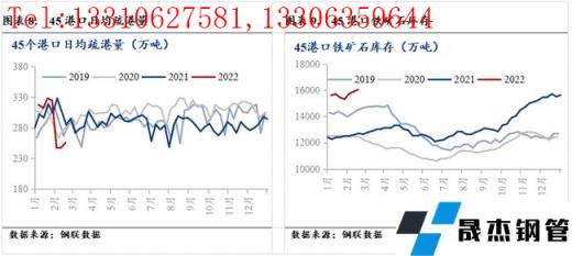 自2021年11月中旬以來,鐵礦石價(jià)格上漲400元/噸,漲幅達(dá)69.32%;相應(yīng)的高爐開工率下降2.15%。市場(chǎng)普遍認(rèn)為鐵礦石價(jià)格上漲偏離實(shí)際基本面情況,疊加2月15日鐵礦石迎來強(qiáng)監(jiān)管,鐵礦石價(jià)格出現(xiàn)回落。2月18日,本周五鐵礦石價(jià)格820元/噸,較上周下跌133元/濕噸。鐵礦石價(jià)格下跌從兩個(gè)方面影響厚壁無縫鋼管價(jià)格:A、厚壁無縫鋼管成本下移,厚壁無縫鋼管支撐減弱;B、扭轉(zhuǎn)黑色產(chǎn)業(yè)鏈偏樂觀的市場(chǎng)情緒,降低厚壁無縫鋼管追漲的風(fēng)險(xiǎn)偏好,從而帶動(dòng)厚壁無縫鋼管價(jià)格下跌。