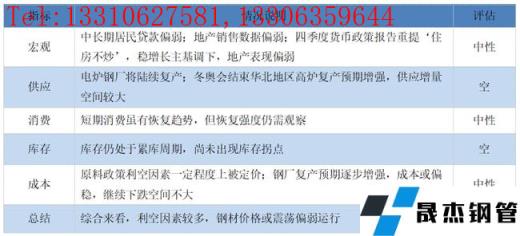 展望下周,鋼價(jià)或偏弱運(yùn)行。我們經(jīng)過上文分析可知,前期厚壁無縫鋼管價(jià)格上漲的核心在于:低供應(yīng)+穩(wěn)增長(zhǎng)。其中穩(wěn)增長(zhǎng)的主基調(diào)尚未發(fā)生變化,但從鐵礦石的政策調(diào)控可以看出,過高的商品價(jià)格將限制穩(wěn)增長(zhǎng)政策的實(shí)施空間,保供穩(wěn)價(jià)或成為后期商品價(jià)格重要的調(diào)控手段。供應(yīng)端,隨著采暖季及冬奧會(huì)的結(jié)束,北方高爐復(fù)產(chǎn)預(yù)期越來越強(qiáng),在現(xiàn)有較低產(chǎn)量的背景下,供應(yīng)增量空間較大。同時(shí),需求端的樂觀預(yù)期,一定程度上已被定價(jià),從偏弱的地產(chǎn)數(shù)據(jù)來看,需求存在較大的不確定性,如需求釋放不及預(yù)期,厚壁無縫鋼管價(jià)格或面臨回落的風(fēng)險(xiǎn)。