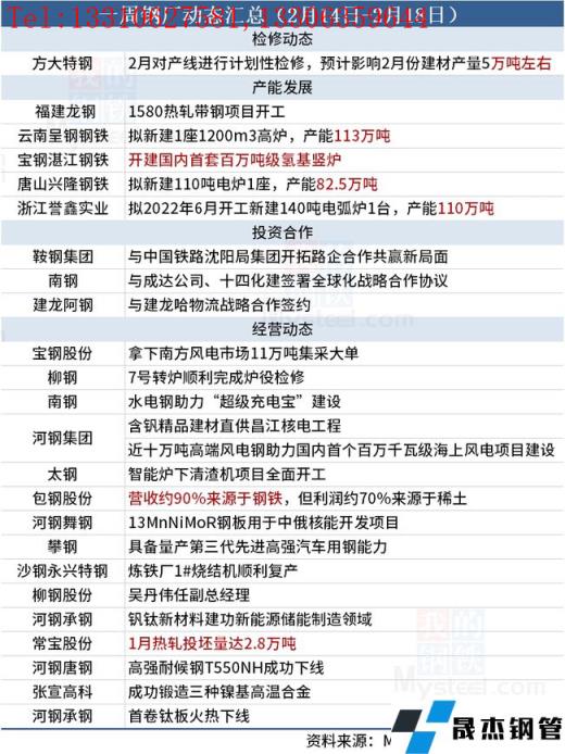 據不完全統(tǒng)計,本周(2月14日-2月18日)有1家無縫厚壁鋼管廠家發(fā)布檢修動態(tài),具體如下: