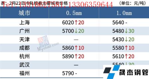 冷軋板卷:2月22日,全國24個主要城市1.0mm冷卷均價5580元/噸,較上個交易日上漲4元/噸。今日黑色期貨呈現(xiàn)高開低走的態(tài)勢,并且午后期貨盤面大幅跳水,現(xiàn)貨市場較為冷清,詢單人數(shù)明顯減少。無縫厚壁鋼管廠家方面,進入2月下旬,各大無縫厚壁鋼管廠家結(jié)算陸續(xù)公布,據(jù)了解,AG對上海地區(qū)冷軋結(jié)算價到庫5470元/噸,BG對上海地區(qū)冷軋結(jié)算價到庫5450元/噸,稍有盈利空間。下游方面,下游終端企業(yè)以謹慎觀望為主,再加上現(xiàn)處于銷售淡季,需求持續(xù)疲軟。綜合來看,故預(yù)計23日國內(nèi)冷軋板卷價格或?qū)⒄鹗幤踹\行。
