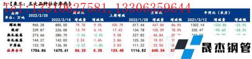 庫存方面,五大品種厚壁無縫鋼管總庫存春節(jié)后連續(xù)累增四周,環(huán)比上周增加94.94萬噸,增幅4.1%。分品種看,建材庫存增加105.78萬噸,增幅為6.9%;板材庫存減少10.84萬噸,降幅1.4%;分指標看,無縫厚壁鋼管廠家?guī)齑姝h(huán)比增加8.69萬噸,增幅1.4%;社會庫存環(huán)比增加86.25萬噸,增幅5.2%。