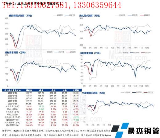 本周五大品種供應(yīng)均有明顯回升,分品種來看,建材增量集中于短流程生產(chǎn)企業(yè),原因在于上周元宵節(jié)過后短流程復(fù)產(chǎn)比例提升,增量區(qū)域集中于華東、華南和西南;板材增量集中于長流程生產(chǎn)企業(yè),原因在于冬奧會結(jié)束,部分板材企業(yè)鐵水逐步恢復(fù),促使軋材增量。綜合來看,原料趨弱運行導(dǎo)致成品材成本下移,擴寬企業(yè)利潤空間,一定程度上提振了企業(yè)復(fù)產(chǎn)積極性。預(yù)計后期供應(yīng)仍有一定增量空間,但受限于冬奧會后還有殘奧會,因此空間相對有限。