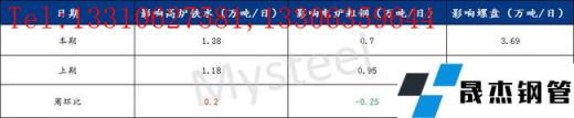 江蘇無縫厚壁鋼管廠家本周影響產(chǎn)量小幅增加,共計(jì)12家無縫厚壁鋼管廠家非正常生產(chǎn),較上周檢修停產(chǎn)鋼企數(shù)量增加1家,鐵水影響產(chǎn)量增加0.2萬噸/日,粗鋼影響產(chǎn)量減少0.25萬噸/日,成材影響產(chǎn)量減少0.25萬噸/日,隨著下游陸續(xù)復(fù)工復(fù)產(chǎn),厚壁無縫鋼管交易邏輯將逐步從預(yù)期轉(zhuǎn)為現(xiàn)實(shí),需求好轉(zhuǎn)的預(yù)期能否兌現(xiàn)以及庫存消化的幅度將成為市場(chǎng)重要影響因素,本周鋼企生產(chǎn)變動(dòng)不大,短期將或一直保持這樣的生產(chǎn)節(jié)奏。具體情況及各主要品種日均影響產(chǎn)量(單位:萬噸)詳見下表: