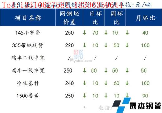 145帶鋼與鋼坯價差明顯收窄,調坯軋材在成本偏高的制約下暫緩復產(chǎn),市場成交不佳,價格繼續(xù)回落。焊管與355帶鋼價差稍收窄。熱卷與帶鋼價差回歸正區(qū)間。