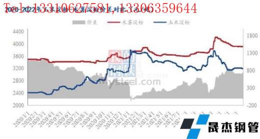 玉米淀粉與其他替代品相比仍有價格優(yōu)勢:2022 年第 8 周,木薯淀粉與玉米淀粉價差小幅走擴,平均價差為 710 元/噸。受注冊食品編號影響,木薯淀粉貨源在港口等待清關(guān)放行時間較長,木薯淀粉供應(yīng)有限。與木薯淀粉價格相比,前期低價玉米淀粉價格依舊具有較為明顯的性價比優(yōu)勢,具備上漲基礎(chǔ)。