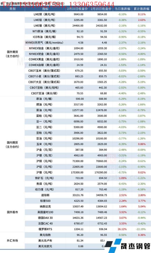 1、目前俄羅斯鋼鐵生產(chǎn)正常運營,但地區(qū)沖突導致電力以及礦石等生產(chǎn)成本上漲,俄羅斯無縫厚壁鋼管廠家暫停了出口報價。地區(qū)沖突導致黑海港口出貨困難,可以正常出貨的港口運費也隨地區(qū)沖突嚴重而增加;整個黑海地區(qū)資源流通不暢,烏克蘭生產(chǎn)短期很難恢復以及運輸成本上漲或?qū)е聝r格再短期內(nèi)顯著上漲。詳情>>