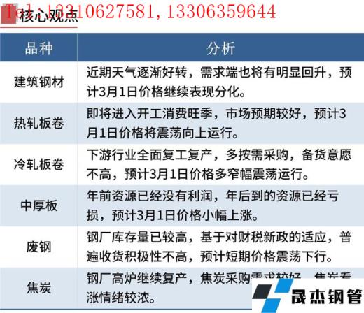 熱軋板卷:2月28日,全國24個主要城市4.75mm熱軋板卷均價5010元/噸,較上個交易日上漲41元/噸。近期房地產政策總體放松,多地購房政策松動。在冬奧會結束之后,限產政策開始邊際寬松,無縫厚壁鋼管廠家復產情緒升溫。即將進入開工消費旺季,市場預期較好。故3月1日全國熱軋板卷或將震蕩向上運行。