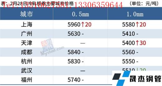 冷軋板卷:2月28日,全國24個主要城市1.0mm冷卷均價5545元/噸,較上個交易日上漲5元/噸。據(jù)貿易商反饋,今日冷軋行情在延續(xù)前期偏悲觀情緒大部分地區(qū)弱穩(wěn)運行,少部分地區(qū)暗降出貨,兌現(xiàn)情緒漸濃,維持出貨為主。下游行業(yè)全面復工復產,多按需采購,備貨意愿不高。預計3月1日國內冷軋現(xiàn)貨價格多窄幅震蕩運行。