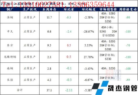 江蘇優(yōu)特無縫厚壁鋼管廠家棒材總庫存37.1萬噸,較上周下降2.11萬噸,環(huán)比降5.38%,較去年同期下降9.25萬噸,同比降19.96%,目前江蘇優(yōu)特無縫厚壁鋼管廠家均正常生產(chǎn)。