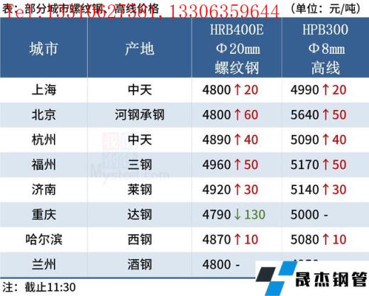 ◎北京:1日早盤建材市場價格價格明顯上漲50,河鋼小螺紋4900-4920,大螺紋4780-4800,盤螺4980。(單位:元/噸)