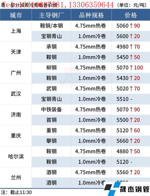 ◎樂從:1日早盤熱卷市場價格上漲100,4.75以上普柳燕5070-5080,2.75普5140-5290錳5250-5270。(單位:元/噸)