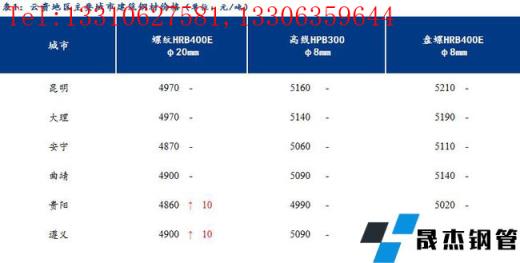 【今日價(jià)格】從云貴主要城市建筑厚壁無縫鋼管價(jià)格來看,今日云南建筑厚壁無縫鋼管市場(chǎng)價(jià)格穩(wěn)定,貴州螺紋鋼市場(chǎng)價(jià)格上漲10元/噸。