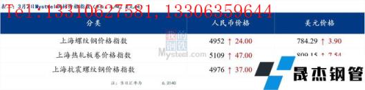 3月2日普鋼絕對價格指數(shù)變化:綜合指數(shù)5189.24,上漲32.04;螺紋鋼指數(shù)4933.65,上漲33.1;線材指數(shù)5269.51,上漲30.43;熱軋板卷指數(shù)5102.79,上漲41.35;冷軋板卷指數(shù)5540.29,上漲28.86;中厚板指數(shù)5167.61,上漲20.52。