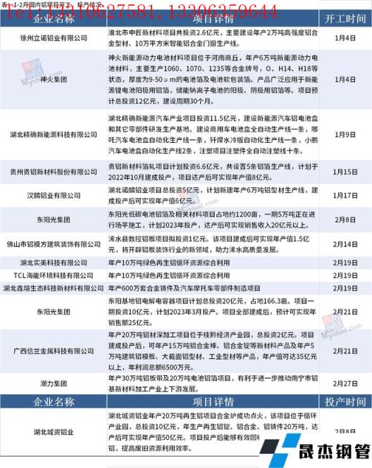 免責聲明:本網站(山東聊城晟杰無縫鋼管廠m.androidrecoverysoftware.com)刊載的“1-2月國內鋁項目開工、投產情況”等均源于網絡,版權歸原作者所有,且僅代表原作者觀點,本文所載信息僅供參考。轉載僅為學習與交流之目的,如無意中侵犯您的合法權益,請及時聯(lián)系刪除。本網站刊登此篇文章并不意味著本站贊同其觀點或證實其內容的真實性,我們不對其科學性、嚴肅性等作任何形式的保證。如果侵犯了您的版權,請盡快聯(lián)系我們予以撤銷,謝謝合作!