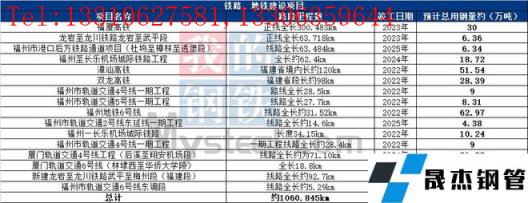 未來2-3年福建省鐵路、地鐵項目在建新建線路總長約1060.845公里,據(jù)不完全統(tǒng)計預(yù)計總用鋼量約283.082萬噸左右。