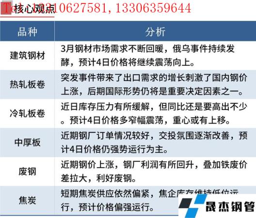 建筑厚壁無縫鋼管:3月3日,全國31個(gè)主要城市20mm三級(jí)抗震螺紋鋼均價(jià)4949元/噸,較上個(gè)交易日上漲25元/噸。供應(yīng)方面,隨冬奧會(huì)結(jié)束,3月產(chǎn)量回升是確定性事件,在后期殘奧會(huì)及兩會(huì)結(jié)束后,產(chǎn)量后續(xù)的回升速度加快;成交來看,進(jìn)入金3月,近期市場情緒好轉(zhuǎn),且下游終端陸續(xù)復(fù)工,現(xiàn)貨價(jià)格跟隨期貨價(jià)格反彈后,成交也逐漸進(jìn)入正軌。短期來看,在3月市場需求不斷回暖的情況下,還需繼續(xù)驗(yàn)證在3月后期需求能否大規(guī)模的復(fù)蘇,若需求恢復(fù)力度尚可,疊加國內(nèi)宏觀利好持續(xù)推進(jìn),國際俄烏事件持續(xù)發(fā)酵,從而支撐國內(nèi)外厚壁無縫鋼管價(jià)格,因此預(yù)計(jì)4日國內(nèi)建筑厚壁無縫鋼管或?qū)⒗^續(xù)震蕩向上。