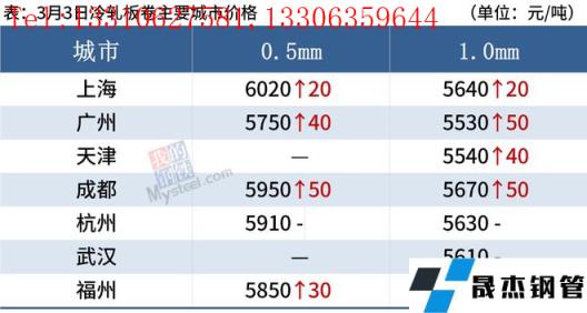 冷軋板卷:3月3日,全國24個(gè)主要城市1.0mm冷卷均價(jià)5625元/噸,較上個(gè)交易日上漲23元/噸。據(jù)局部市場反饋,3日市場整體出貨情況較上一交易日略有好轉(zhuǎn),午后市場商家有補(bǔ)漲;庫存方便看,3日本網(wǎng)監(jiān)測26個(gè)城市庫存,本周冷軋板卷社會(huì)庫存142.43萬噸,周環(huán)比減少1.84萬噸,月環(huán)比增加8.73萬噸,年同比(公歷)增加18.10萬噸,年同比(農(nóng)歷)增加18.82萬噸。從上海、廣東地區(qū)了解,節(jié)后庫存壓力較大,隨著下游行業(yè)需求逐步釋放,近日庫存壓力有所緩解,但同比去年還是要高出不少。整合來看,預(yù)計(jì)4日全國冷軋價(jià)格多窄幅震蕩運(yùn)行,重心或有上移。