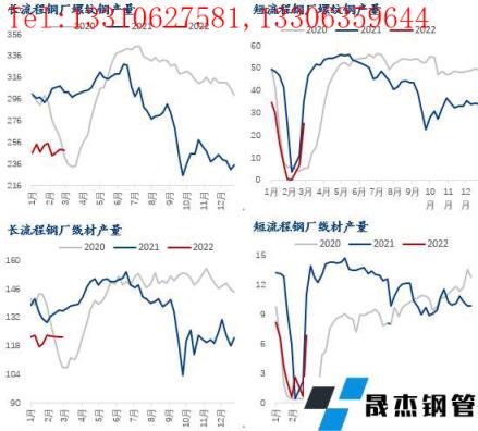 節(jié)后開市,無縫厚壁鋼管廠家建筑厚壁無縫鋼管產量有所回升,但由于利潤的緣故,速率和彈性均不及往年。以螺紋鋼為例,分區(qū)域來看,除華北區(qū)域產量月環(huán)比小幅下降外,其余地區(qū)產量月環(huán)比均出現增加,增幅均較為有限。分工藝來看,長流程無縫厚壁鋼管廠家螺紋鋼產量月環(huán)比下降,短流程無縫厚壁鋼管廠家螺紋鋼產量月環(huán)比增加。分品種來看,螺紋鋼和線材產量月環(huán)比均出現小幅增加。