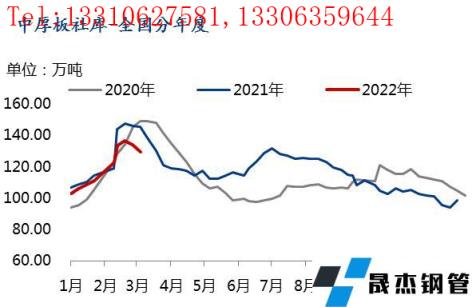另一方面,21年四季度末無(wú)縫厚壁鋼管廠(chǎng)家品種鋼訂單轉(zhuǎn)好,很多無(wú)縫厚壁鋼管廠(chǎng)家對(duì)內(nèi)部品種結(jié)構(gòu)進(jìn)行了調(diào)整,以減少流通材,增加直供量為主,這一點(diǎn)也從我們節(jié)前一些品種鋼價(jià)格漲幅也能看出,包括橋梁板、高建鋼,Q355C, Q355D板等等,這些品種節(jié)前價(jià)格漲幅均高于普板和低合金板。所以進(jìn)一步導(dǎo)致市場(chǎng)流通材的量在減少,這一點(diǎn),也可以從我們今年春節(jié)后的社會(huì)庫(kù)存能夠得到驗(yàn)證。今年春節(jié)后的中板社會(huì)庫(kù)存大幅低于去年同期,還有一方面原因是,今年大家冬儲(chǔ)的意愿非常低,投機(jī)性訂貨量較去年有明顯下降,多以協(xié)議量到貨為主。