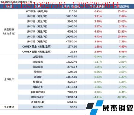 金融市場:本周主要商品期貨全部上漲,WTI原油大漲25.08%。全球股市全部下跌,歐洲股市跌幅靠前;美元指數(shù)98.51,上漲2.04%。