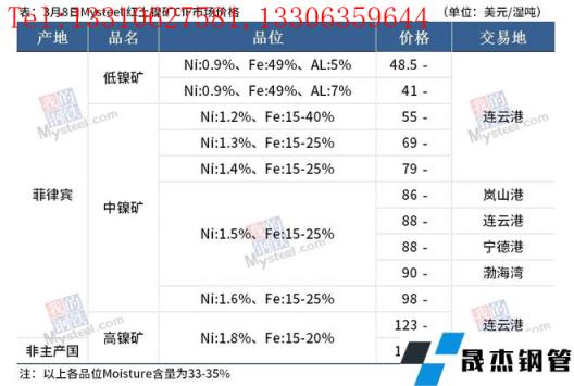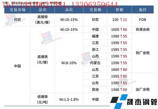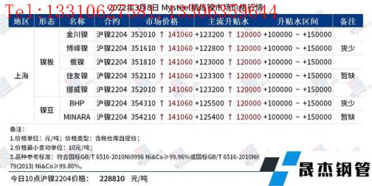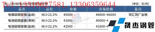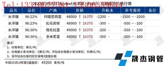 免責(zé)聲明:本網(wǎng)站(山東聊城晟杰無(wú)縫鋼管廠m.androidrecoverysoftware.com)刊載的“鎳產(chǎn)業(yè)鏈價(jià)格(2022.3.8)”等均源于網(wǎng)絡(luò),版權(quán)歸原作者所有,且僅代表原作者觀點(diǎn),本文所載信息僅供參考。轉(zhuǎn)載僅為學(xué)習(xí)與交流之目的,如無(wú)意中侵犯您的合法權(quán)益,請(qǐng)及時(shí)聯(lián)系刪除。本網(wǎng)站刊登此篇文章并不意味著本站贊同其觀點(diǎn)或證實(shí)其內(nèi)容的真實(shí)性,我們不對(duì)其科學(xué)性、嚴(yán)肅性等作任何形式的保證。如果侵犯了您的版權(quán),請(qǐng)盡快聯(lián)系我們予以撤銷,謝謝合作!