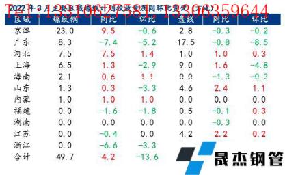 從投放區(qū)域來看,3月東北無縫厚壁鋼管廠家螺紋主要投放華北、盤線主要投放華東,區(qū)域選擇較以往變化不大;螺紋對(duì)華北、華南、華東的投放量分別為30.5萬噸、10.萬噸和7.8萬噸,盤線對(duì)華東、華南、華北的投放量分別為22.3萬噸、17.5萬噸和3.8萬噸。