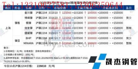免責(zé)聲明:本網(wǎng)站(山東聊城晟杰無縫鋼管廠m.androidrecoverysoftware.com)刊載的“鎳價極端行情之下 下游壓力凸顯”等均源于網(wǎng)絡(luò),版權(quán)歸原作者所有,且僅代表原作者觀點(diǎn),本文所載信息僅供參考。轉(zhuǎn)載僅為學(xué)習(xí)與交流之目的,如無意中侵犯您的合法權(quán)益,請及時聯(lián)系刪除。本網(wǎng)站刊登此篇文章并不意味著本站贊同其觀點(diǎn)或證實(shí)其內(nèi)容的真實(shí)性,我們不對其科學(xué)性、嚴(yán)肅性等作任何形式的保證。如果侵犯了您的版權(quán),請盡快聯(lián)系我們予以撤銷,謝謝合作!