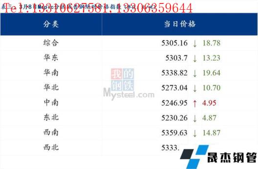 3月8日普鋼絕對(duì)價(jià)格指數(shù)變化:綜合指數(shù)5305.16,下跌18.78;螺紋鋼指數(shù)5036.67,下跌14.09;線材指數(shù)5371.79,下跌9.76;熱軋板卷指數(shù)5245.35,下跌44.87;冷軋板卷指數(shù)5664.11,下跌27.59;中厚板指數(shù)5263.85,下跌11.41。