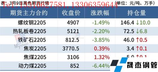 熱軋板卷:3月9日,全國24個主要城市4.75mm熱軋板卷均價5221元/噸,較上個交易日下跌47元/噸。黑色商品期貨市場震蕩下跌,早盤走弱,現(xiàn)貨報價小幅下跌,成交表現(xiàn)不佳,午后期卷繼續(xù)走低,下游采購量收縮,全天成交較差,商家套現(xiàn)意愿增強。綜合來看,前期熱卷期現(xiàn)貨價格大幅拉漲,市場恐高情緒濃厚,高價位成交受阻,需求釋放不及預期,商家欲獲利套現(xiàn),價格出現(xiàn)一定程度回落,但高成本和低庫存以及國內(nèi)外價差都將抑制鋼價大幅下跌。綜合來看,預計10日熱軋板卷價格或震蕩偏弱為主。