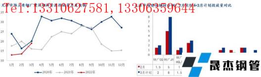 3月無縫厚壁鋼管廠家對(duì)京津冀區(qū)域投放量環(huán)比增加41.3萬噸,同比增加13.15萬噸。進(jìn)入3月份,京津冀無縫厚壁鋼管廠家復(fù)產(chǎn)加速,整體投放量明顯上升。到貨方面以火運(yùn)為主,受公共衛(wèi)生事件影響,火運(yùn)到貨不穩(wěn)定,具體來看:1、河鋼承鋼兩螺一線在產(chǎn),對(duì)京津冀投放量2月份19.5萬噸,2月份增加至26.5萬噸;2、河鋼樂鋼一條螺紋產(chǎn)線在產(chǎn),計(jì)劃本月再?gòu)?fù)產(chǎn)一條,對(duì)京津冀投放增加,2月份整體9萬噸,3月份計(jì)劃增加至14.5萬噸;3、敬業(yè)無縫厚壁鋼管廠家4條螺紋產(chǎn)線在產(chǎn),加上烏鋼資源流入,對(duì)京津冀投放量環(huán)比增加19萬噸;4、本月中旬,東華無縫厚壁鋼管廠家螺紋產(chǎn)線計(jì)劃復(fù)產(chǎn);5、鑫達(dá)一條螺紋產(chǎn)線不飽和生產(chǎn),2月京津冀僅投放5萬,3月份計(jì)劃投放9萬噸;5、東北西北材新?lián)徜?、海鑫、西林?月份對(duì)北京市場(chǎng)合計(jì)投放5.3萬噸左右,2月份計(jì)劃5.5萬噸。