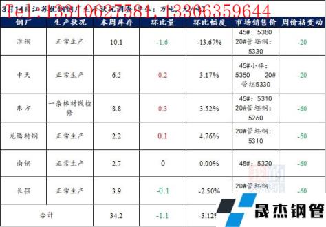 江蘇優(yōu)特?zé)o縫厚壁鋼管廠家棒材總庫存34.2萬噸,較上周下降1.1萬噸,環(huán)比降3.12%,較去年同期下降7.97萬噸,同比降18.9%,目前江蘇優(yōu)特?zé)o縫厚壁鋼管廠家除東方特鋼一條棒材線檢修外,其余無縫厚壁鋼管廠家正常生產(chǎn)。