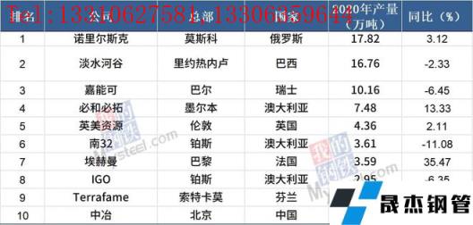 以上為2020年全球十大鎳礦山排名。詳情請(qǐng)點(diǎn)擊》》