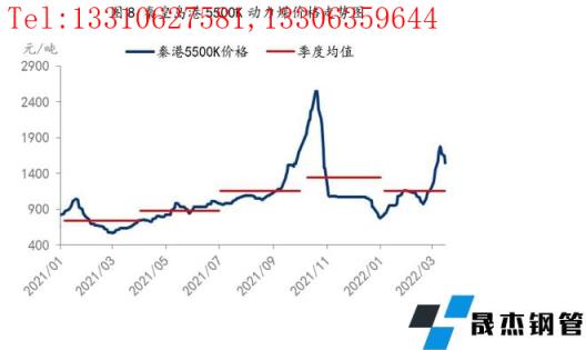 3月供需緊張疊加國際煤價上漲,帶動國內(nèi)上漲。3月重大會議及賽事召開,以及貴州煤礦事故發(fā)生,煤炭主產(chǎn)區(qū)安全檢查將加嚴,同時多地疫情反復(fù)以及海外地緣沖突影響全球煤炭資源供應(yīng)結(jié)構(gòu)改變,我國進口煤倒掛嚴重,導(dǎo)致企業(yè)轉(zhuǎn)向國產(chǎn)礦采購增多,但國內(nèi)煤礦增產(chǎn)空間有限,導(dǎo)致3月煤炭供應(yīng)緊張情況或加劇。3月天氣逐步轉(zhuǎn)暖,中下旬北方取暖季結(jié)束,煤炭需求將有所下降。此外,3月全國疫情爆發(fā),建筑業(yè)施工單位停工增多,制造業(yè)生產(chǎn)以及其他行業(yè)也受到一定影響,全國用電需求難保持高增長,非發(fā)電用煤需求較好,整體煤炭需求表現(xiàn)依然尚可。目前,控價格方面,經(jīng)批準的長協(xié)價為570-770元(以下均對應(yīng)5500大卡)要嚴格執(zhí)行,基準價所有煤炭企業(yè)按675元執(zhí)行,坑口價不得超700元,港口不得超900元,管控長協(xié)煤力度大,市場煤受限制不大,需求較好,疊加海外地緣沖突影響國際煤價大漲,進而支撐煤價出現(xiàn)大幅上漲。不過,在依法加強市場監(jiān)管以及陸續(xù)釋放煤礦增產(chǎn)信息下,煤價沖高后出現(xiàn)回落。