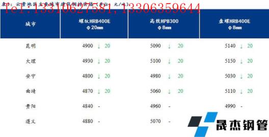 【今日價格】從云貴主要城市建筑厚壁無縫鋼管價格來看,今日云南建筑厚壁無縫鋼管市場價格下跌20元/噸,貴州建筑厚壁無縫鋼管市場價格持穩(wěn)。