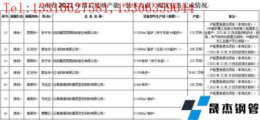 武鋼集團(tuán)昆明鋼鐵股份有限公司、紅河鋼鐵有限公司、云南曲靖鋼鐵集團(tuán)呈鋼鋼鐵有限公司、云南曲靖鋼鐵集團(tuán)雙友鋼鐵有限公司4家鋼企合計(jì)退出煉鐵產(chǎn)能586萬(wàn)噸,煉鋼產(chǎn)能523.647萬(wàn)噸、焦炭產(chǎn)能80萬(wàn)噸。鐵鋼產(chǎn)能共計(jì)1110萬(wàn)噸。