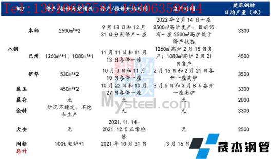 2021年為完成新疆粗鋼產(chǎn)量限產(chǎn)目標(biāo)和應(yīng)對冬季市場需求大幅減量的市場環(huán)境,新疆主要建筑厚壁無縫鋼管生產(chǎn)企業(yè)在2021年11月-12月均執(zhí)行不同程度的減限產(chǎn)措施。據(jù)統(tǒng)計,2021年底新疆主要無縫厚壁鋼管廠家中僅八鋼(本部)、昆侖鋼鐵、金特鋼鐵和哈密大安處于在產(chǎn)狀態(tài),各無縫厚壁鋼管廠家日均產(chǎn)量維持在700-2500噸左右,八鋼巴州與伊鋼基地、昆玉鋼鐵和閩新鋼鐵則完全處于停產(chǎn)狀態(tài),停產(chǎn)時間長達3.5-4.5個月。跨入2022年之后,金特鋼鐵產(chǎn)量有所抬升,但由于高爐鐵水產(chǎn)量不穩(wěn)定,日均建筑厚壁無縫鋼管產(chǎn)量在2000-3500噸之間浮動,而其他在產(chǎn)無縫厚壁鋼管廠家受季節(jié)性淡季影響依舊處于不飽和生產(chǎn)狀態(tài)。