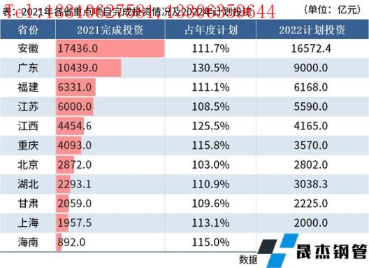 ◎ 據(jù)不完全統(tǒng)計(jì),截至3月16日,已有11個(gè)省份公布其2021年重點(diǎn)項(xiàng)目完成投資情況和2022年計(jì)劃目標(biāo)。2022年,上述11省份共計(jì)劃投資近5.6萬(wàn)億元,其中安徽省計(jì)劃投資超1.65萬(wàn)億,排名第一。