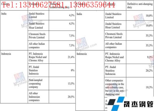 總結(jié):此次歐盟對印度和印尼不銹鋼冷軋調(diào)降反傾銷稅的基礎(chǔ)上,增加反補貼稅的征收,對印尼不銹鋼生產(chǎn)商而言影響較大。除印尼金達萊外,印尼的其他公司(包括印尼瑞浦)目前出口歐盟的不銹鋼冷軋稅率都超過30%,較他國而言,如此高的稅率一定程度上或?qū)p少印尼不銹鋼冷軋出口該地的量。