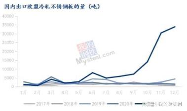 主要是出口至意大利的不銹鋼冷軋量大幅增加所致,自9月的4400噸增至12月的2.78萬噸。
