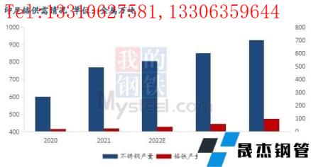 據(jù)統(tǒng)計(jì),2021年印尼不銹鋼粗鋼產(chǎn)量494.2萬噸,全部為300系,同比增長95.33%,其中印尼青山產(chǎn)量為359.2萬噸,占比72%。2022年印尼新增投產(chǎn)計(jì)劃共計(jì)200萬噸,其中青山預(yù)計(jì)2季度新增100萬噸產(chǎn)能,不排除新增投產(chǎn)直接用于生產(chǎn)高冰鎳,若印尼青山持續(xù)減產(chǎn)不銹鋼生產(chǎn)高冰鎳,鉻需求將繼續(xù)下滑。預(yù)計(jì)2022年印尼不銹鋼產(chǎn)量約為540萬噸,較年初預(yù)期減少約30萬噸,鉻需求量減少約11萬噸。