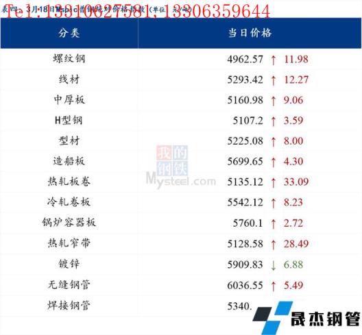 3月18日普鋼絕對價格指數(shù)變化:綜合指數(shù)5209.05,上漲15.43;螺紋鋼指數(shù)4962.57,上漲11.98;線材指數(shù)5293.42,上漲12.27;熱軋板卷指數(shù)5135.12,上漲33.09;冷軋板卷指數(shù)5542.12,上漲8.23;中厚板指數(shù)5160.98,上漲9.06。
