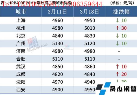 截至3月18日,全國主要城市20mm三級抗震螺紋鋼均價4955元/噸,周環(huán)比上漲3元/噸;8.0mmHPB300高線均價5162元/噸,周環(huán)比下跌2元/噸。