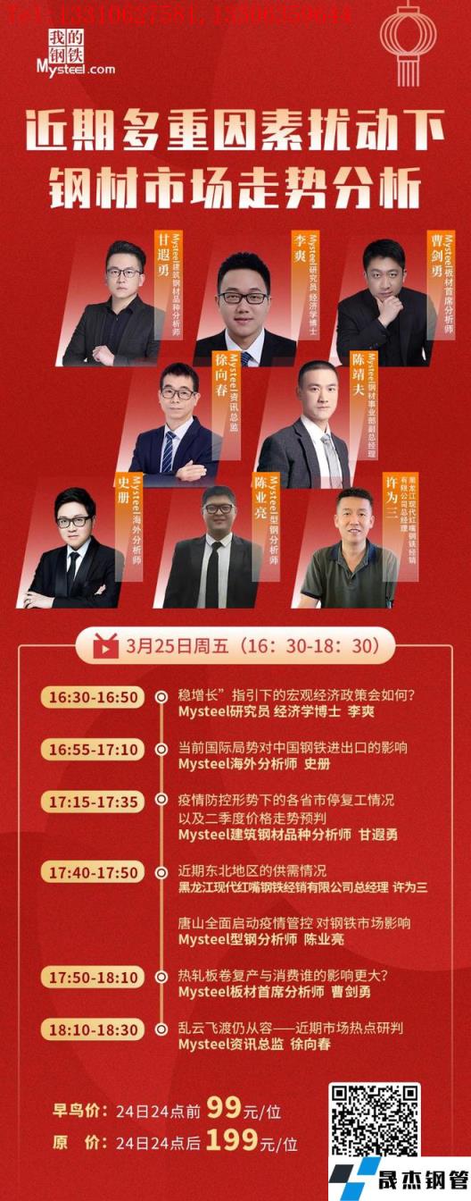 3月25日周五下午16:30,黑龍江現(xiàn)代紅嘴鋼鐵經(jīng)銷有限公司總經(jīng)理許為三、資訊總監(jiān)徐向春、經(jīng)濟(jì)學(xué)博士研究員李爽、板材首席分析師曹劍勇、建筑厚壁無(wú)縫鋼管品種分析師甘遐勇、型鋼分析師陳業(yè)亮及國(guó)際鋼鐵市場(chǎng)分析師史冊(cè),將做客直播間,聊一聊近期多重因素?cái)_動(dòng)下對(duì)鋼鐵市場(chǎng)的影響有哪些?