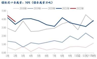 縱觀歷年來的中國鎳鐵進口數(shù)據(jù),2月進口量均會存在環(huán)比下降的情況。今年2月環(huán)比減量高達20%,除了1月進口量太多,主因還是2月自然天數(shù)較少。雖然印尼鎳生鐵冶煉企業(yè)春節(jié)正常生產(chǎn),但國內(nèi)印尼鎳鐵進口貿(mào)易多處于假期狀態(tài),月內(nèi)進口量也隨之降低。