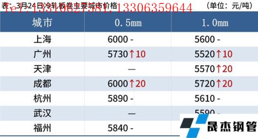 冷軋板卷:3月24日,全國24個(gè)主要城市1.0mm冷卷均價(jià)5656元/噸,較上個(gè)交易日上漲10元/噸。今日早間市場報(bào)價(jià)紛紛上漲20-30元/噸,詢單人數(shù)明顯增加,但由于疫情影響,需求持續(xù)疲軟,多數(shù)市場存在暗降優(yōu)惠現(xiàn)象,貿(mào)易商以出貨回籠資金為主,心態(tài)較為謹(jǐn)慎。庫存方面,據(jù)不完全統(tǒng)計(jì),現(xiàn)冷軋無縫厚壁鋼管廠家?guī)齑?8.68萬噸,周環(huán)比增加4.74萬噸,社會(huì)庫存140.37萬噸,周環(huán)比減少2.75萬噸,周消費(fèi)量81.67萬噸,環(huán)比減少1.45萬噸。綜合來看,故預(yù)計(jì)25日國內(nèi)冷軋板卷價(jià)格或?qū)⒈P整運(yùn)行。