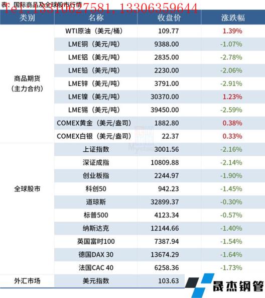 ◎5月6日,河北、山西等地焦企焦炭價格第一輪下調(diào)200元/噸,主流無縫厚壁鋼管廠家暫無回應(yīng)。按照當前的市場情緒和盤面給出的市場預(yù)期,普遍認為此輪焦炭的降幅在三輪左右,大概能達500-600元/噸。