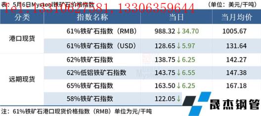 ◎5月6日,全國主港鐵礦石成交68.50萬噸,環(huán)比減26.7%;237家主流貿(mào)易商建材成交14.17萬噸,環(huán)比減29.7%。